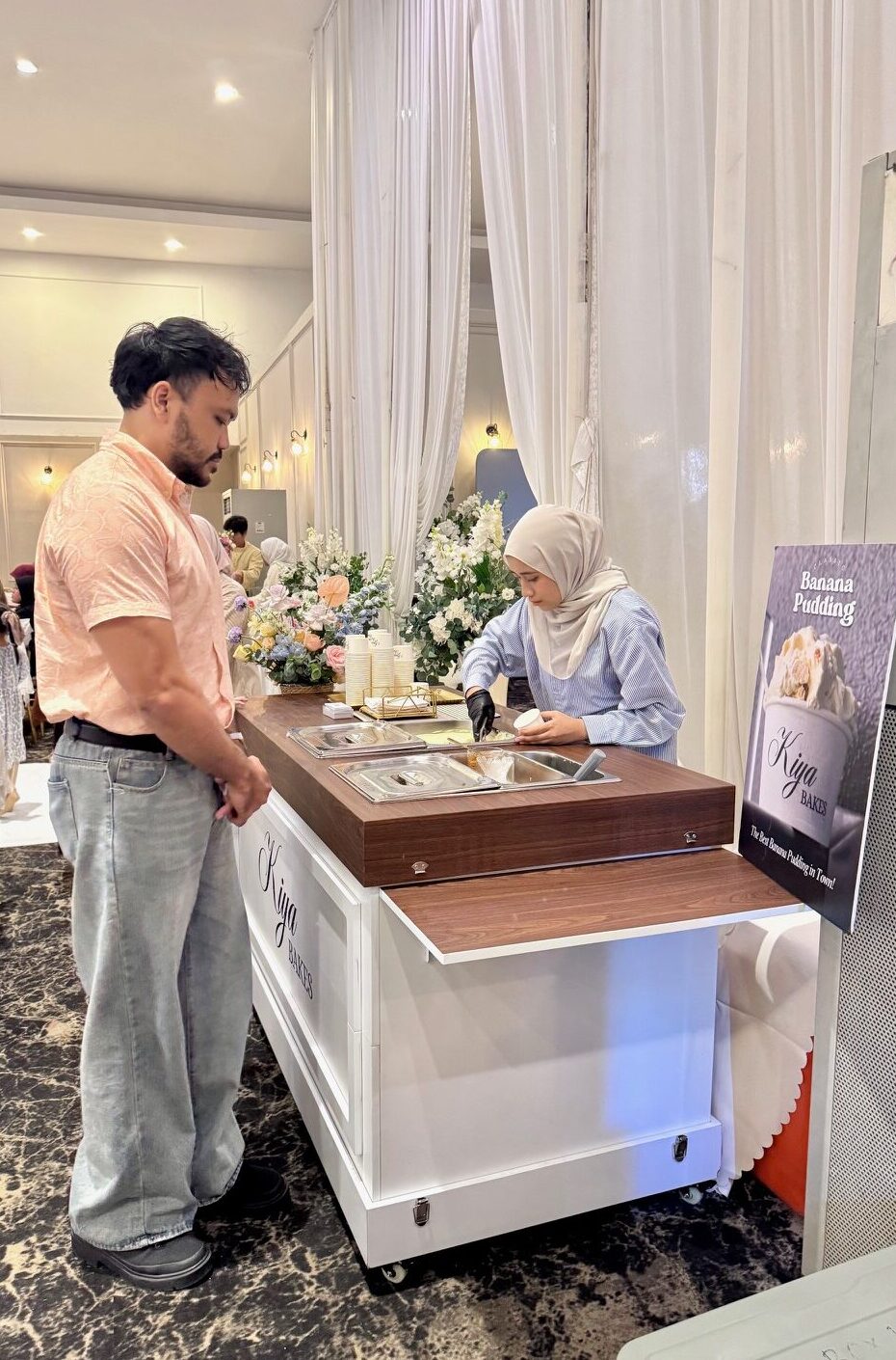 Make your big day even sweeter with Kiya Bakes. We cater for weddings ranging from 100 to 1,000 guests — perfect for intimate celebrations or grand receptions. Treat your guests to our signature Banana Pudding or other dessert options, served fresh from our live station.